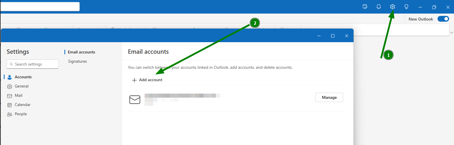 Tip: If you already have an email account set up in New Outlook, click Add Account to proceed.