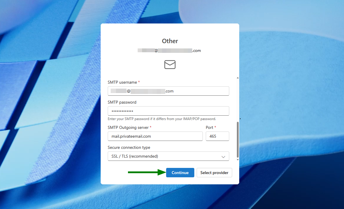 SMTP Username: Your full Private Email address