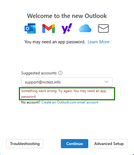 “Something went wrong. Try again. You may need an app password.”