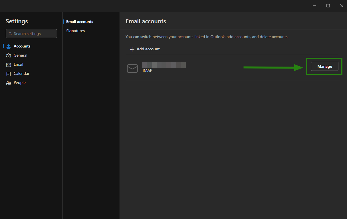2. Click on 3 dots next to your added mailbox and choose the option ‘Manage account’: